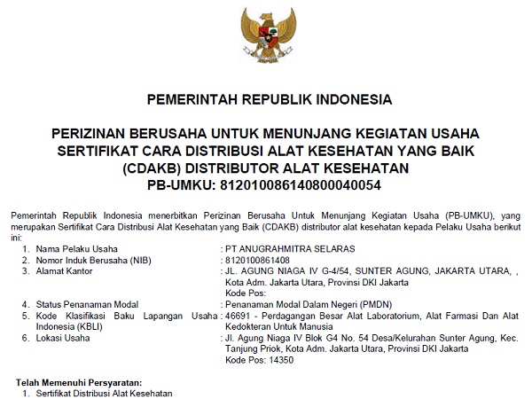 dan memiliki sertifikat resmi dari Kementerian Kesehatan RI sebagai